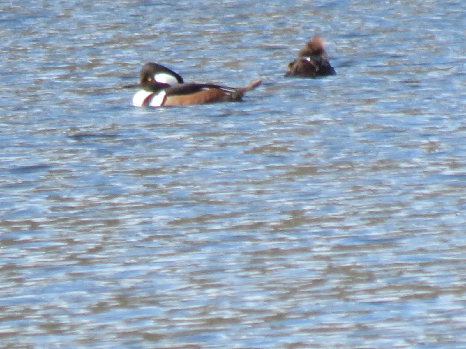 A male Hooded Merganser with his female companion not far behind.