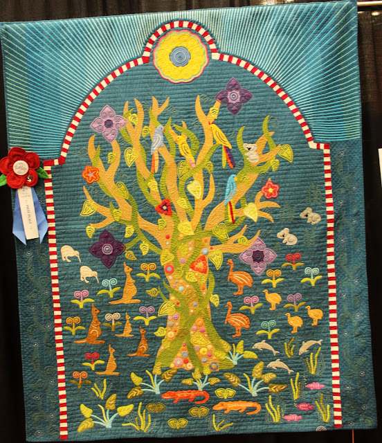 This was a spectacular show so there will be several posts showcasing the many of the quilts. I deeply apologise if I have gotten any of the names wrong and also the fact that I missed the names on a couple of the quilts. I could have taken many many more pictures as there were many other outstanding quilts but by the end, I was suffering from camera fatigue! I also managed to delete a few with my new computer with its picture software which I didn't have totally under control.